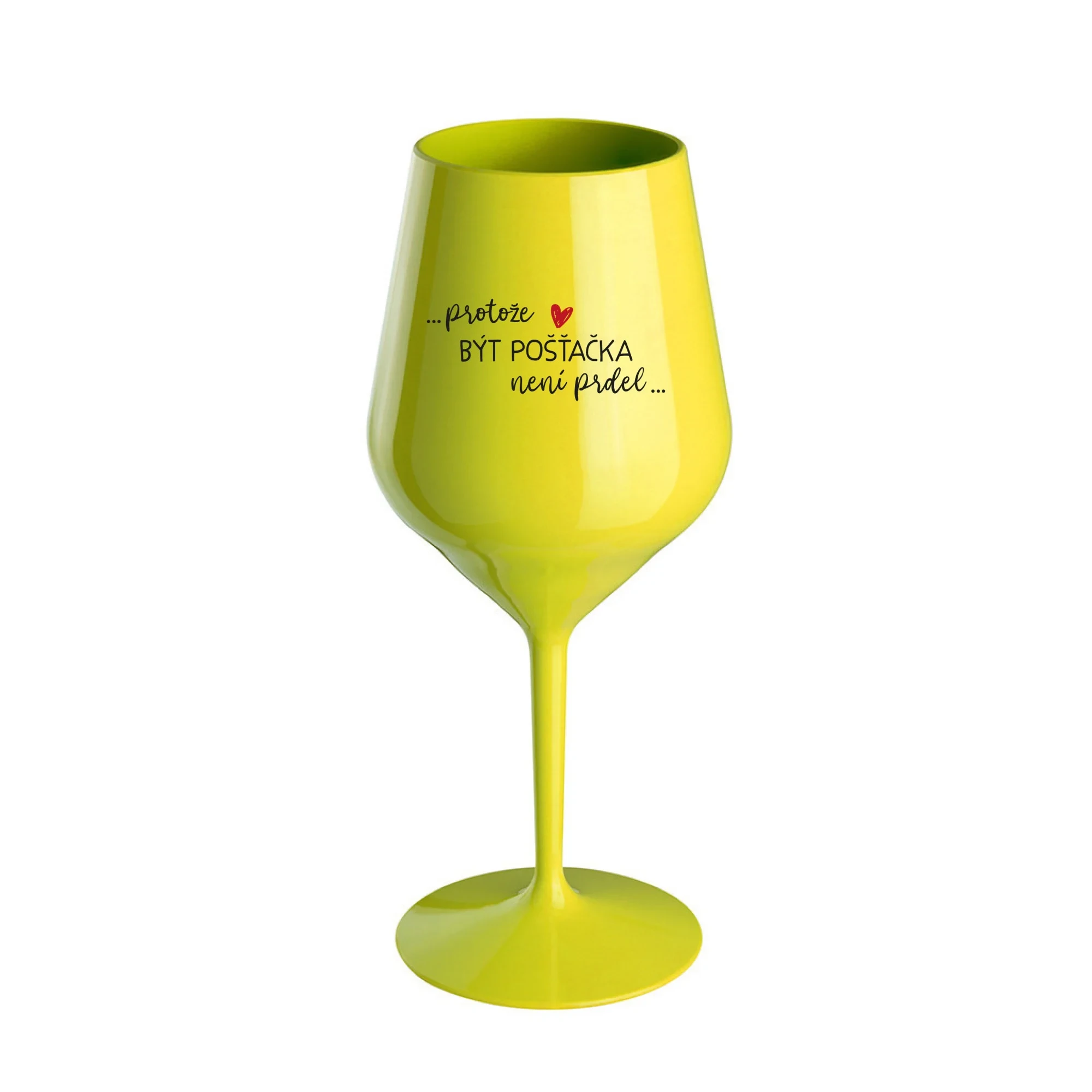 PROTOŽE BÝT POŠŤAČKOU NENÍ PRDEL - žlutá nerozbitná sklenice na víno 470 ml