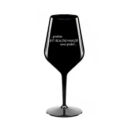 PROTOŽE BÝT REALITNÍ MAKLÉŘ NENÍ PRDEL - černá nerozbitná sklenice na víno 470 ml