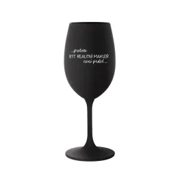PROTOŽE BÝT REALITNÍ MAKLÉŘ NENÍ PRDEL - černá sklenice na víno 350 ml