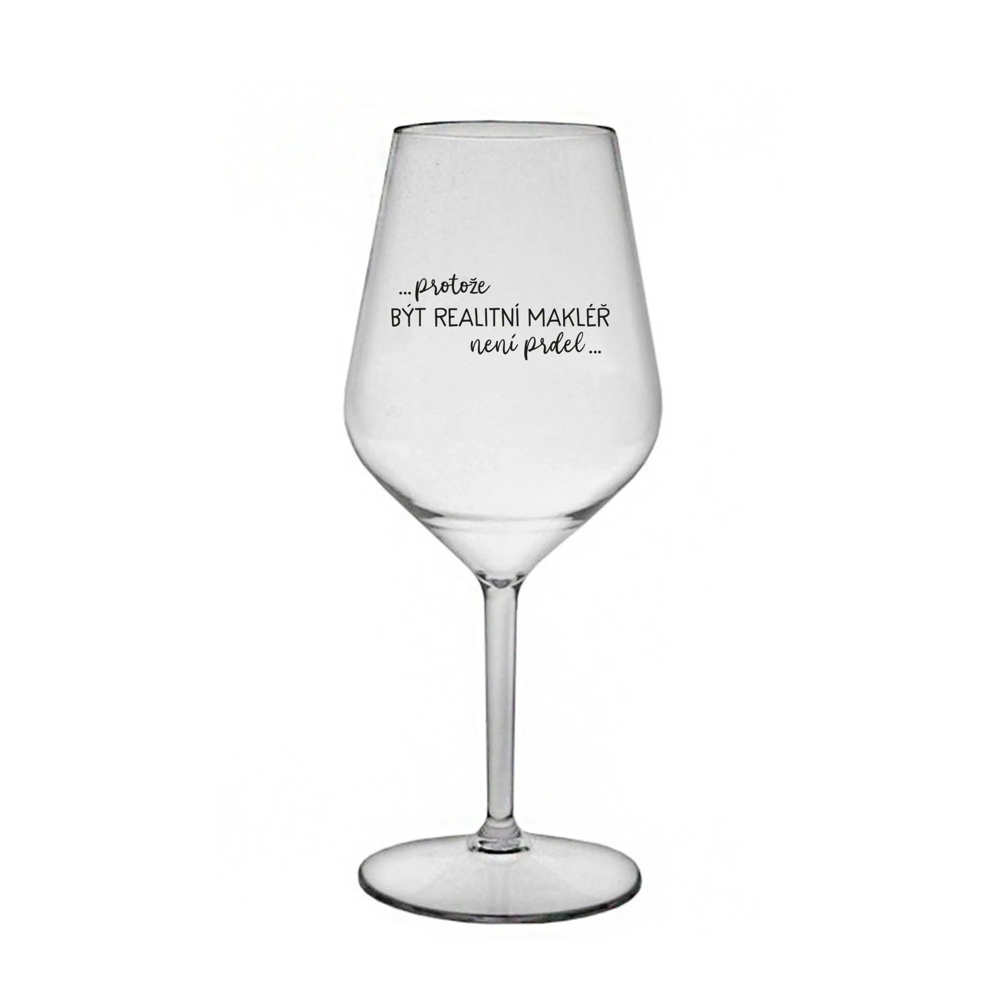 PROTOŽE BÝT REALITNÍ MAKLÉŘ NENÍ PRDEL - čirá nerozbitná sklenice na víno 470 ml