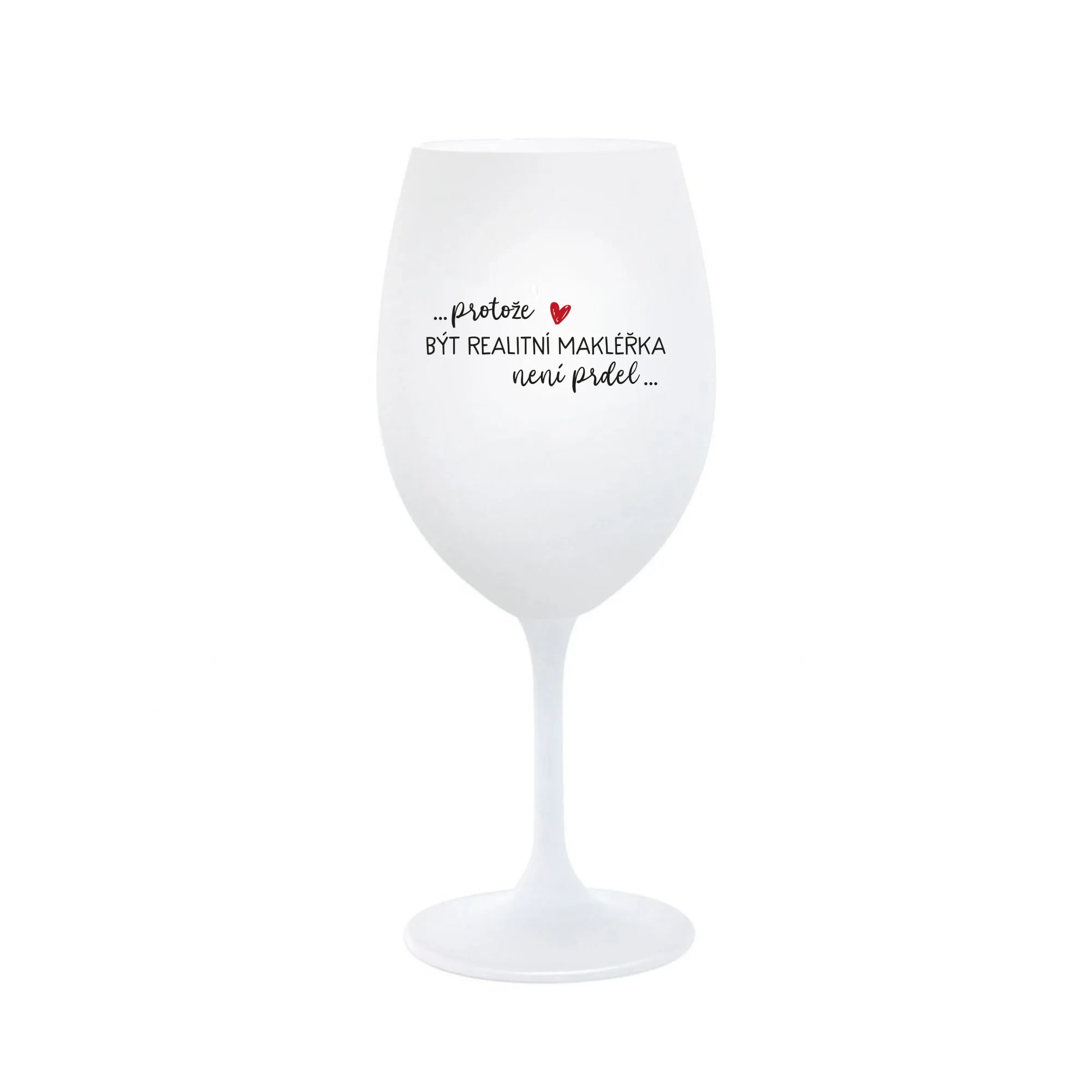 PROTOŽE BÝT REALITNÍ MAKLÉŘKA NENÍ PRDEL - bílá sklenice na víno 350 ml