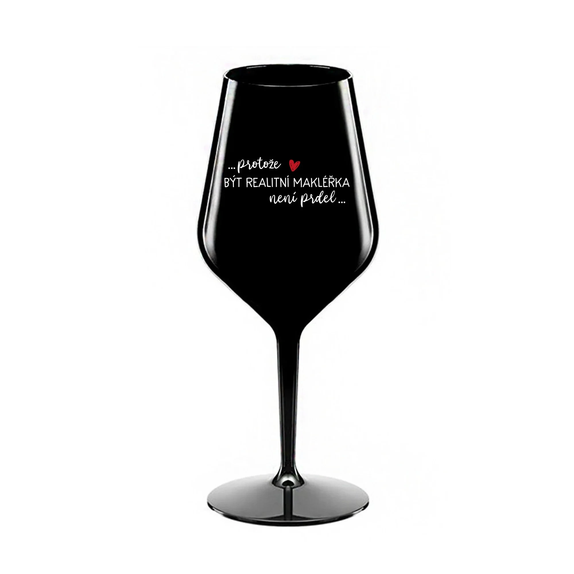 PROTOŽE BÝT REALITNÍ MAKLÉŘKA NENÍ PRDEL - černá nerozbitná sklenice na víno 470 ml