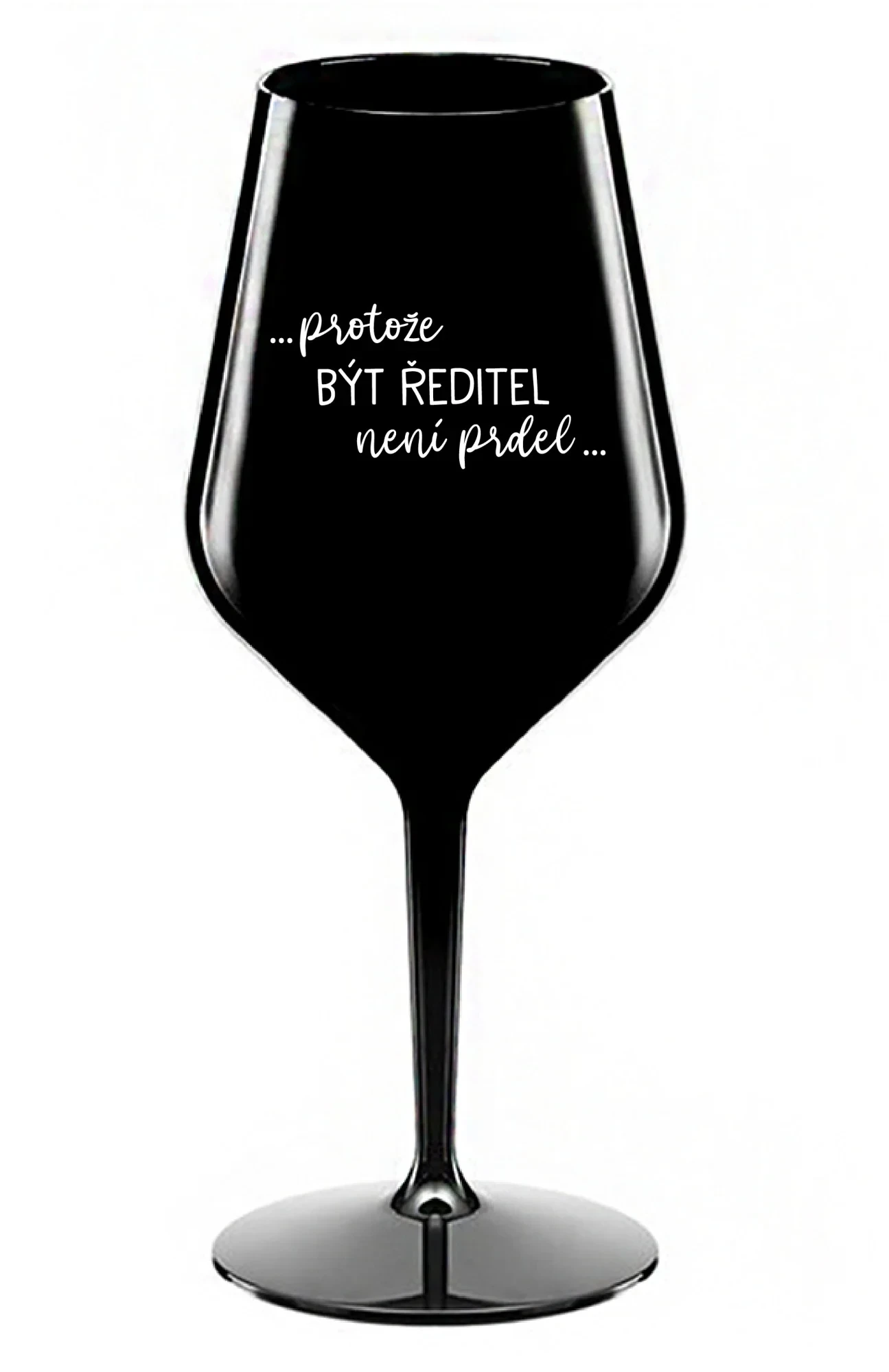 ...PROTOŽE BÝT ŘEDITEL NENÍ PRDEL... - černá nerozbitná sklenice na víno 470 ml