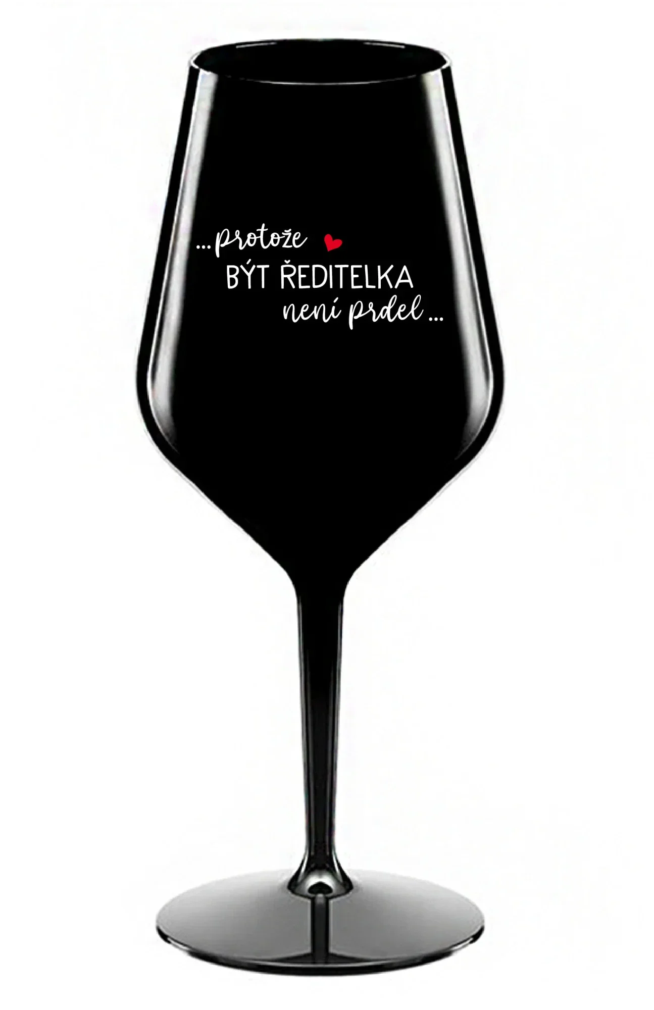 ...PROTOŽE BÝT ŘEDITELKA NENÍ PRDEL... - černá nerozbitná sklenice na víno 470 ml