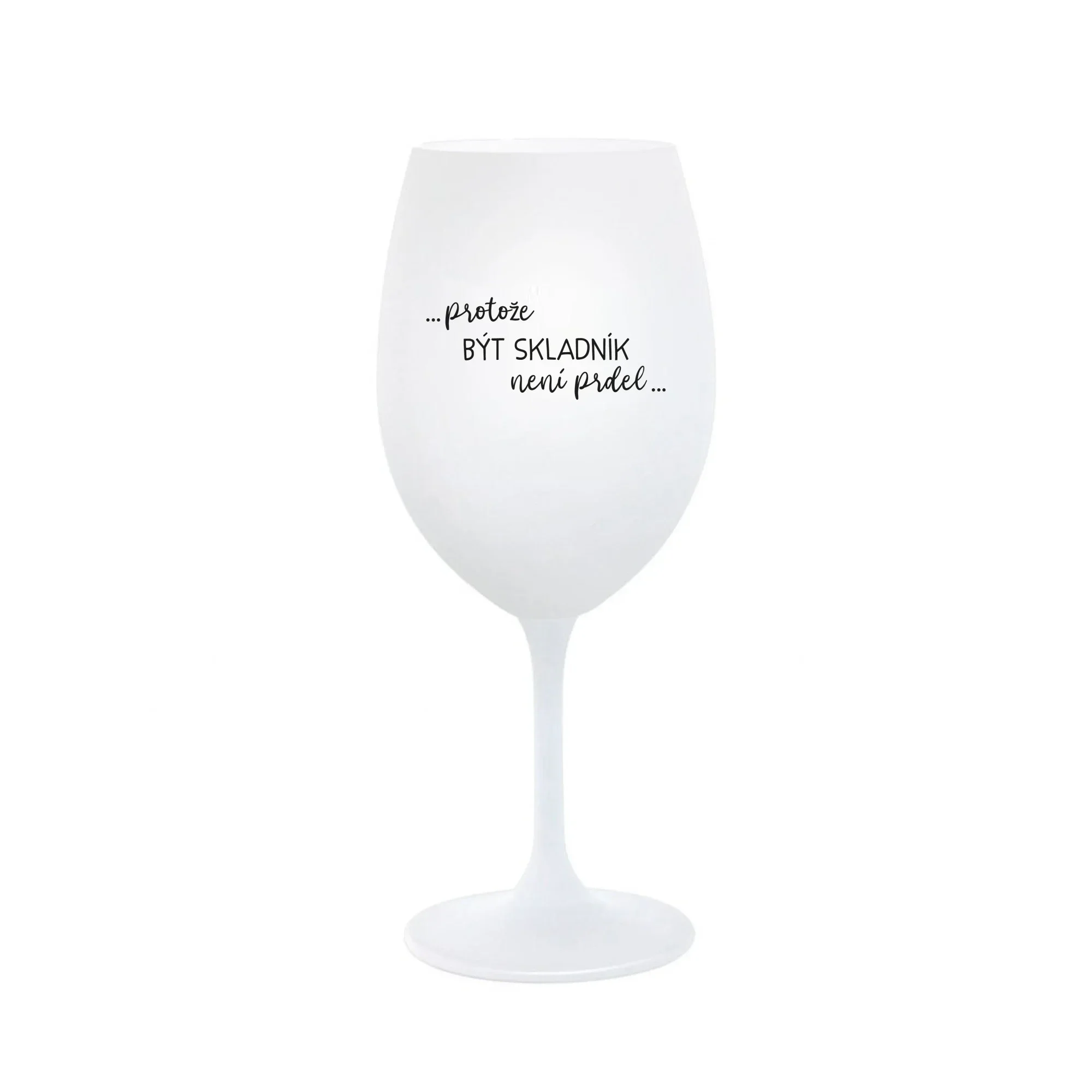 PROTOŽE BÝT SKLADNÍK NENÍ PRDEL - bílá sklenice na víno 350 ml