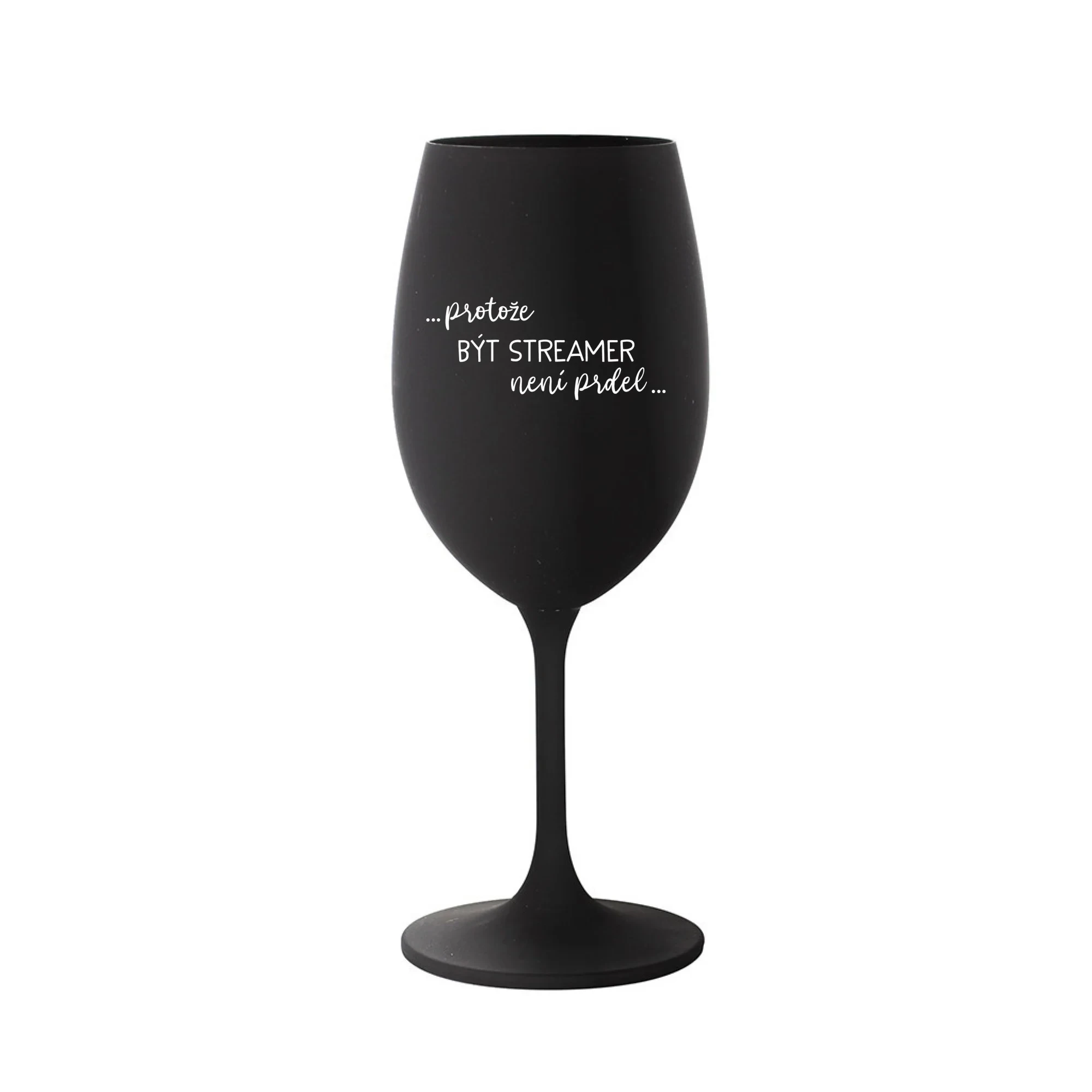 PROTOŽE BÝT STREAMER NENÍ PRDEL - černá sklenice na víno 350 ml