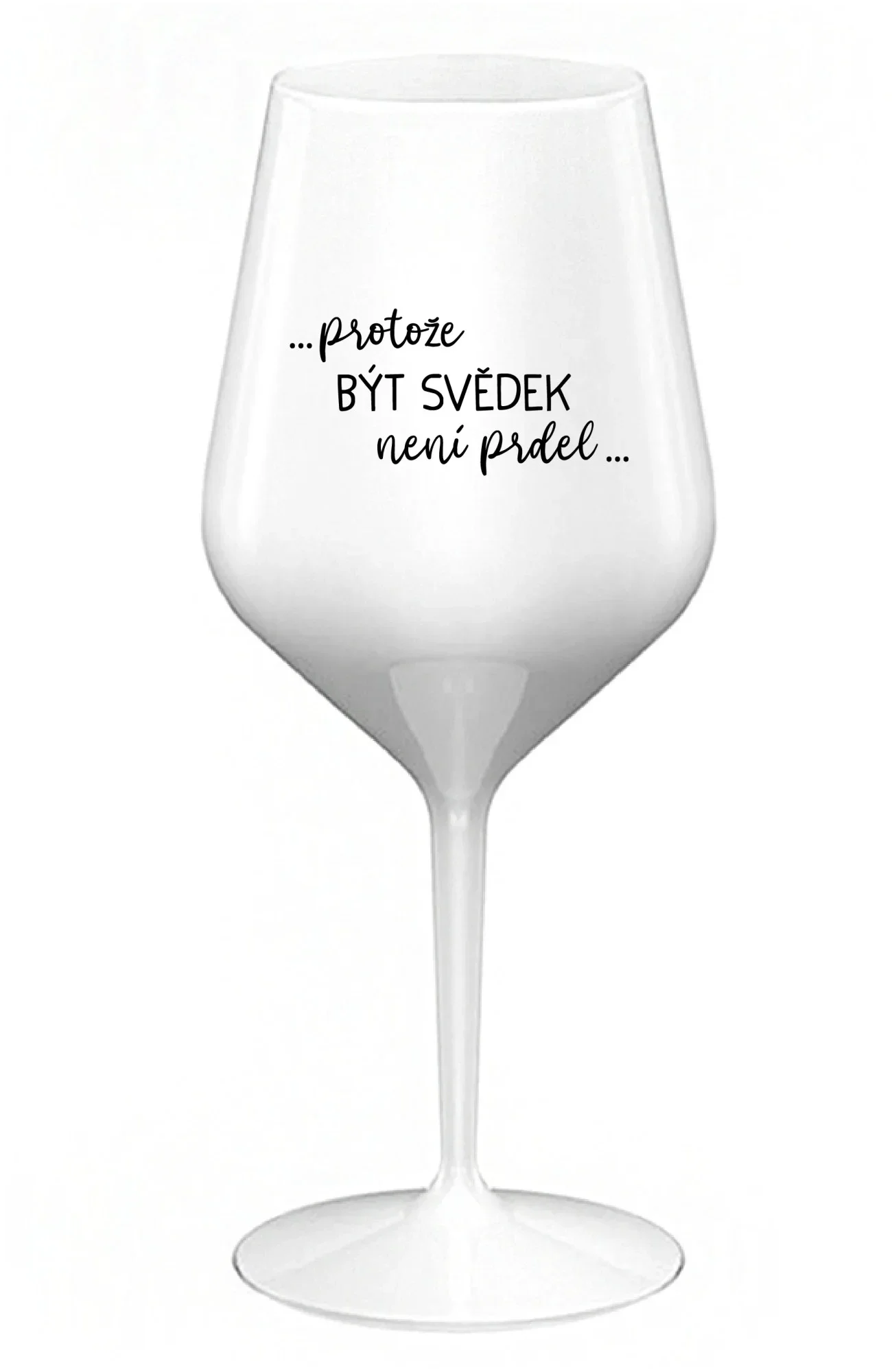 ...PROTOŽE BÝT SVĚDEK NENÍ PRDEL... - bílá nerozbitná sklenice na víno 470 ml