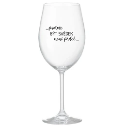 Vinná čirá sklenice s originálním motivem ...PROTOŽE BÝT SVĚDEK NENÍ PRDEL... je krásným a osobitým dárkem, které ale využijete i Vy sami třeba ve chvílích, kdy si budete chtít zpříjemnit náročný den. Tyto originální vinné sklenice jsou totiž nejen pro výjimečné události, ale i pro běžné večery, které si chcete zpříjemnit sklenkou dobrého vína. Jistě proto potěší každého milovníka vína, i toho, kdo si umí svůj život vychutnat plnými doušky.