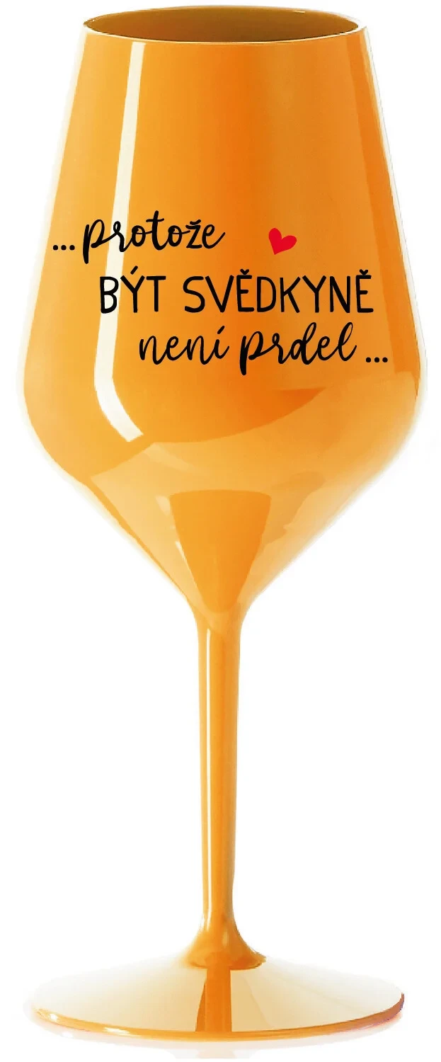 ...PROTOŽE BÝT SVĚDKYNĚ NENÍ PRDEL... - oranžová nerozbitná sklenice na víno 470 ml