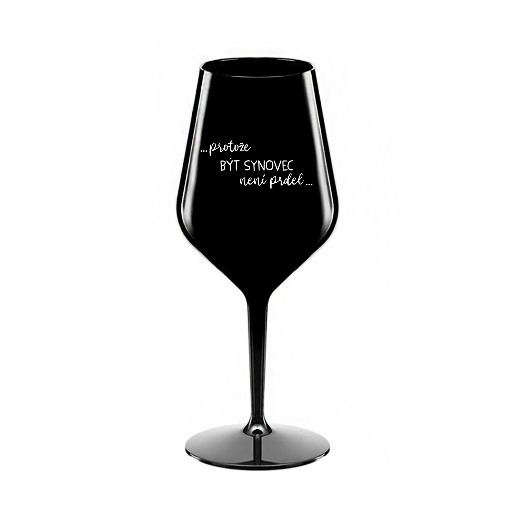 PROTOŽE BÝT SYNOVEC NENÍ PRDEL - černá nerozbitná sklenice na víno 470 ml