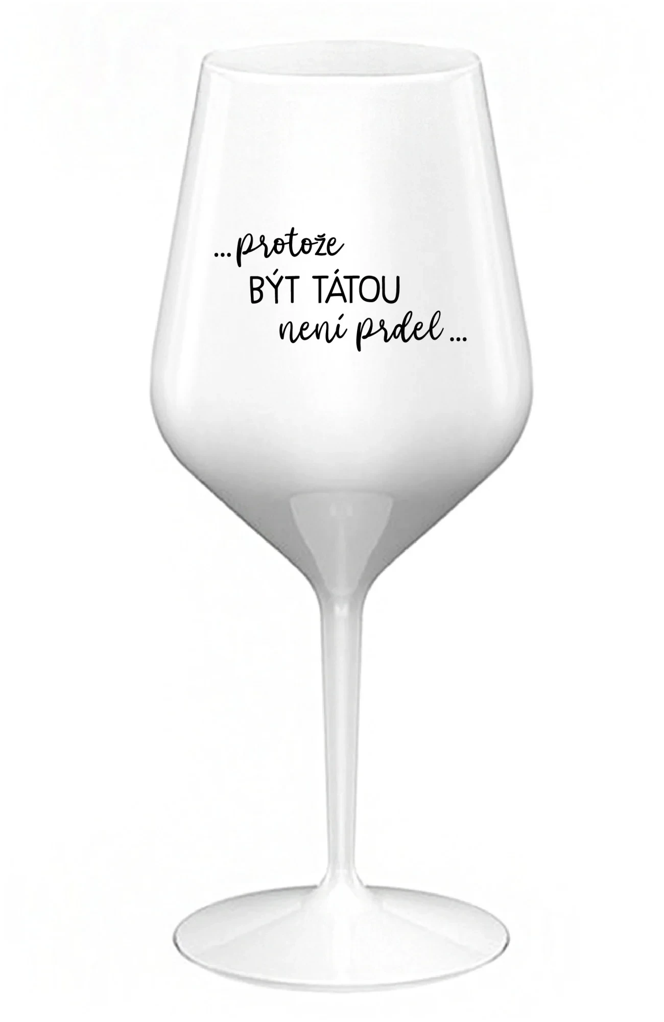 ...PROTOŽE BÝT TÁTOU NENÍ PRDEL... - bílá nerozbitná sklenice na víno 470 ml