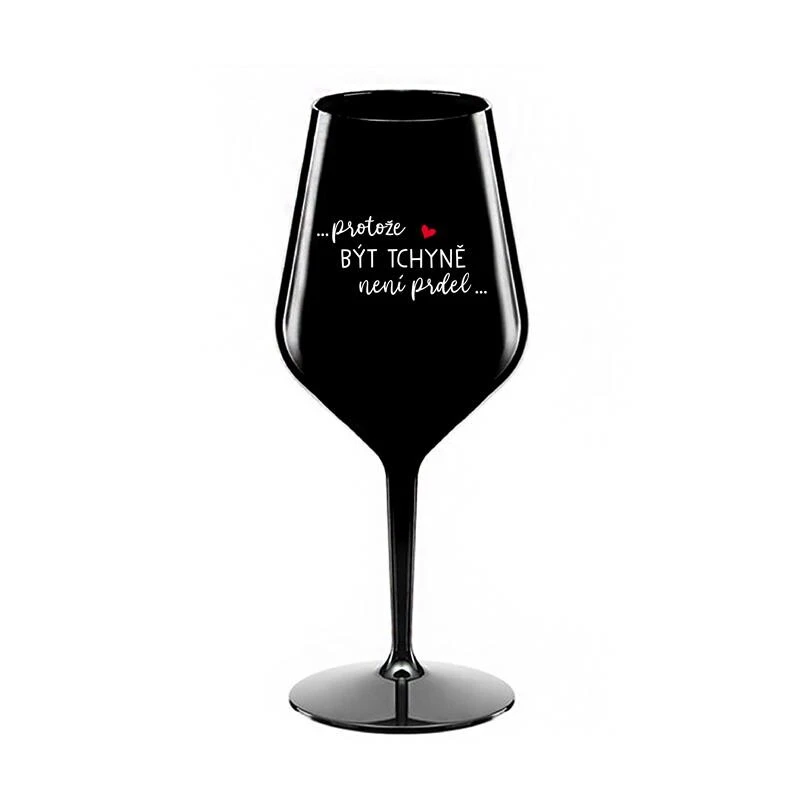 ...PROTOŽE BÝT TCHYNĚ NENÍ PRDEL... - černá nerozbitná sklenice na víno 470 ml