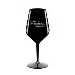 PROTOŽE BÝT TERAPEUTKA NENÍ PRDEL - černá nerozbitná sklenice na víno 470 ml