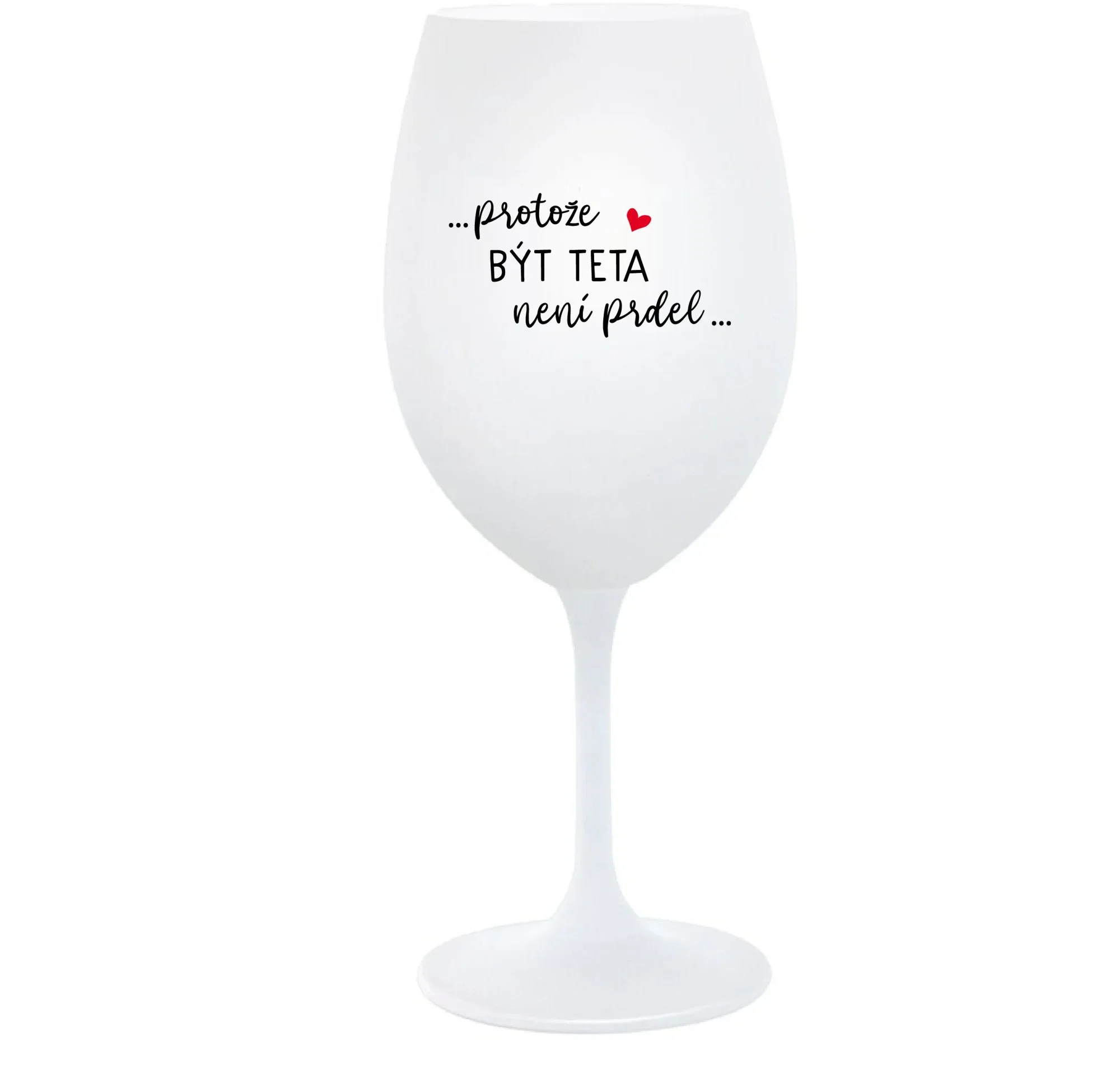 Vinná bílá sklenice s originálním motivem ...PROTOŽE BÝT TETA NENÍ PRDEL... je krásným a osobitým dárkem, které ale využijete i Vy sami třeba ve chvílích, kdy si budete chtít zpříjemnit náročný den. Tyto originální vinné sklenice jsou totiž nejen pro výjimečné události, ale i pro běžné večery, které si chcete zpříjemnit sklenkou dobrého vína. Jistě proto potěší každého milovníka vína, i toho, kdo si umí svůj život vychutnat plnými doušky.