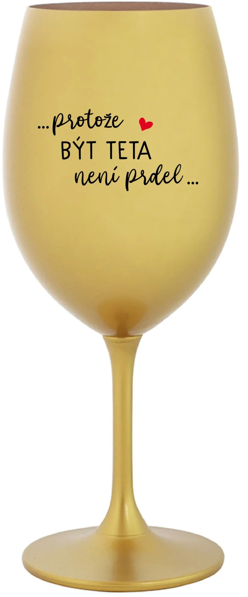 Vinná zlatá sklenice s originálním motivem ...PROTOŽE BÝT TETA NENÍ PRDEL... je krásným a osobitým dárkem, které ale využijete i Vy sami třeba ve chvílích, kdy si budete chtít zpříjemnit náročný den. Tyto originální vinné sklenice jsou totiž nejen pro výjimečné události, ale i pro běžné večery, které si chcete zpříjemnit sklenkou dobrého vína. Jistě proto potěší každého milovníka vína, i toho, kdo si umí svůj život vychutnat plnými doušky.