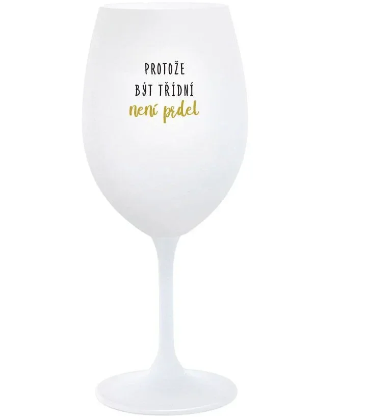 Vinná bílá sklenice s originálním motivem PROTOŽE BÝT TŘÍDNÍ NENÍ PRDEL je krásným a osobitým dárkem, které ale využijete i Vy sami třeba ve chvílích, kdy si budete chtít zpříjemnit náročný den. Tyto originální vinné sklenice jsou totiž nejen pro výjimečné události, ale i pro běžné večery, které si chcete zpříjemnit sklenkou dobrého vína. Jistě proto potěší každého milovníka vína, i toho, kdo si umí svůj život vychutnat plnými doušky.