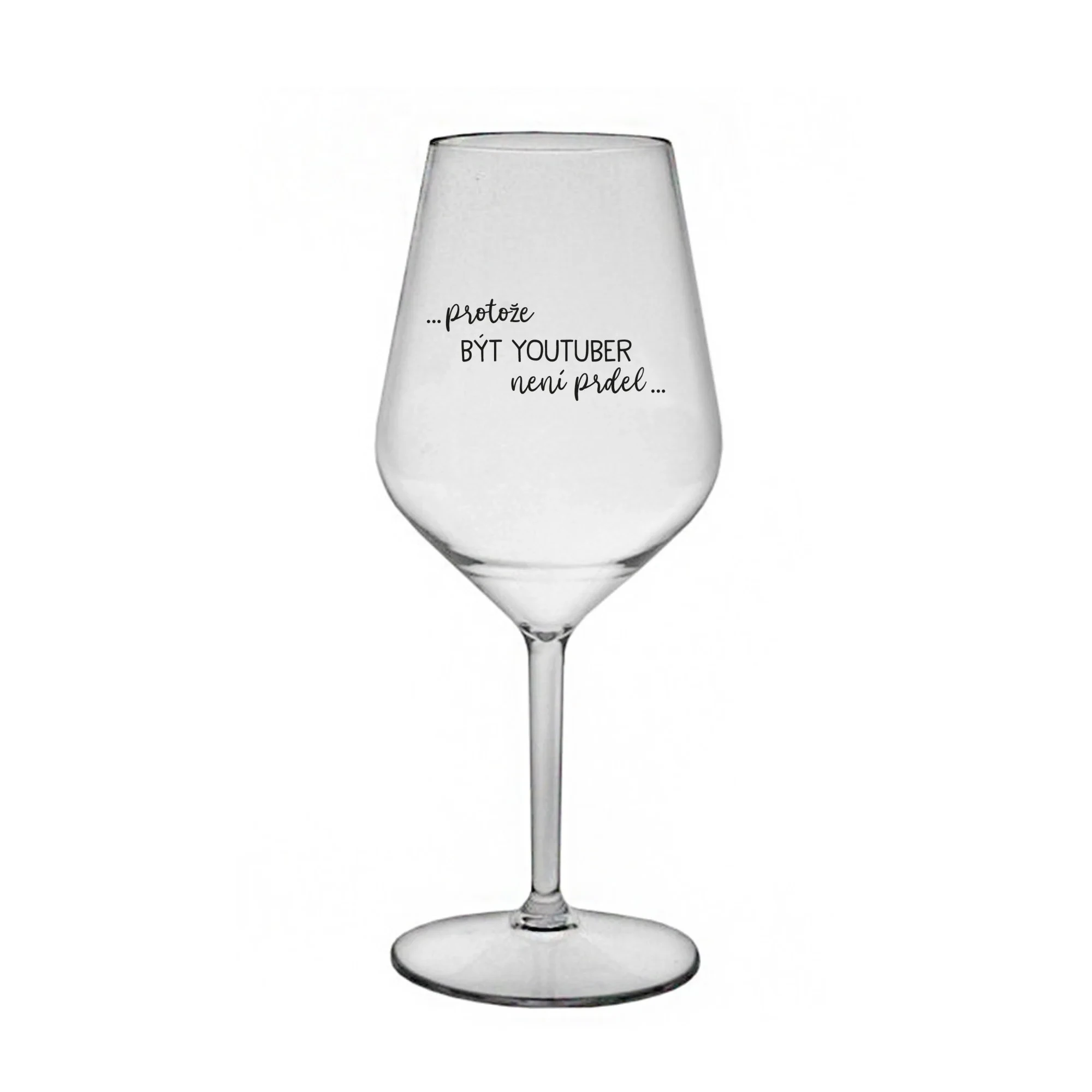 PROTOŽE BÝT YOUTUBER NENÍ PRDEL - čirá nerozbitná sklenice na víno 470 ml