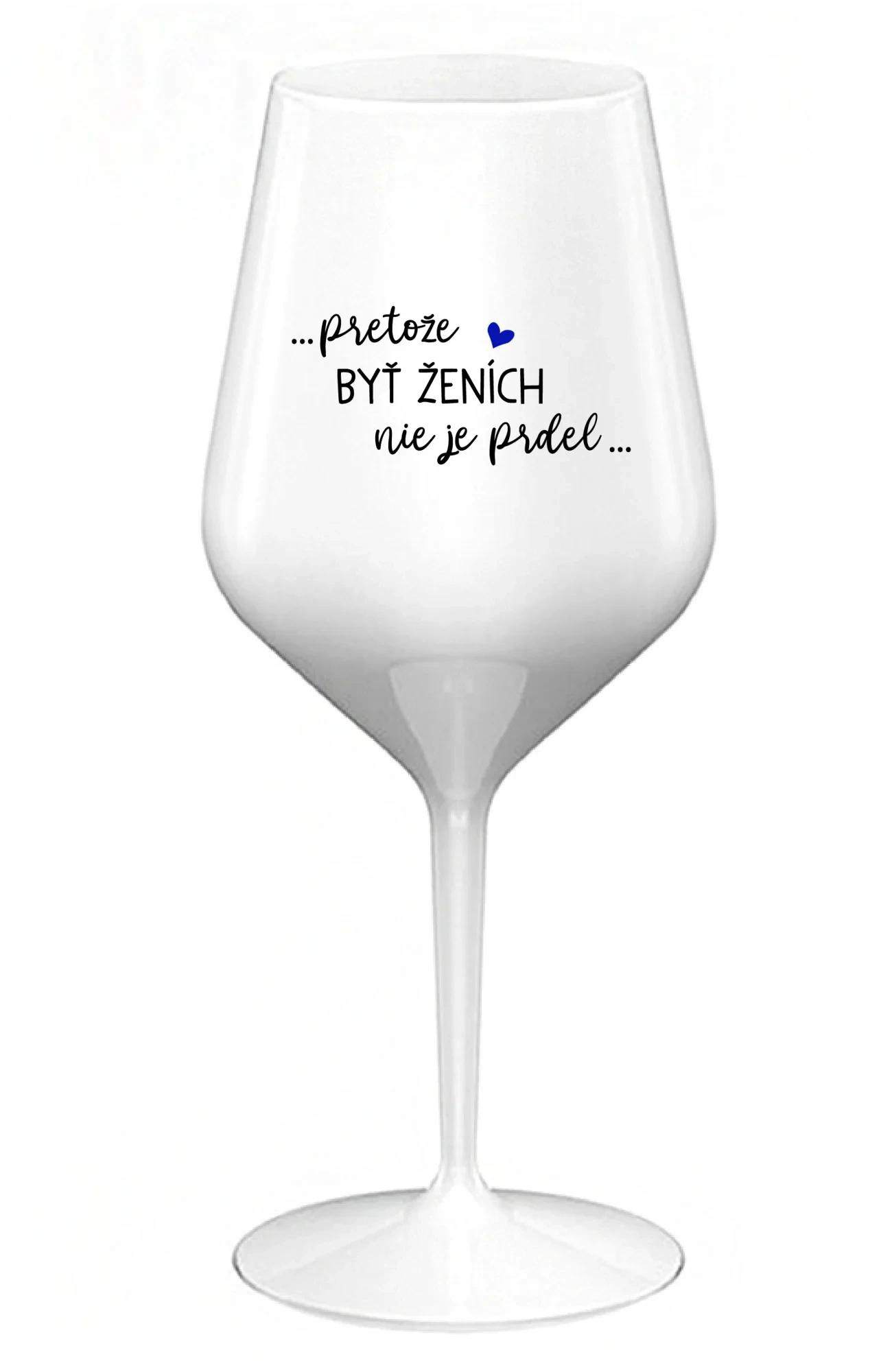 ...PROTOŽE BÝT ŽENICH NENÍ PRDEL... - biely nerozbitný pohár na víno 470 ml