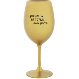 Vinná zlatá sklenice s originálním motivem ...PROTOŽE BÝT ŽENICH NENÍ PRDEL... je krásným a osobitým dárkem, které ale využijete i Vy sami třeba ve chvílích, kdy si budete chtít zpříjemnit náročný den. Tyto originální vinné sklenice jsou totiž nejen pro výjimečné události, ale i pro běžné večery, které si chcete zpříjemnit sklenkou dobrého vína. Jistě proto potěší každého milovníka vína, i toho, kdo si umí svůj život vychutnat plnými doušky.