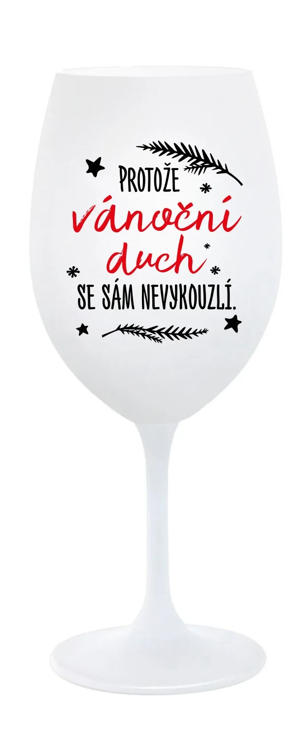 Vinná bílá sklenice s originálním motivem PROTOŽE VÁNOČNÍ DŮCH SE SÁM NEVYKOUZLÍ je krásným a osobitým dárkem, které ale využijete i Vy sami třeba ve chvílích, kdy si budete chtít zpříjemnit náročný den. Tyto originální vinné sklenice jsou totiž nejen pro výjimečné události, ale i pro běžné večery, které si chcete zpříjemnit sklenkou dobrého vína. Jistě proto potěší každého milovníka vína, i toho, kdo si umí svůj život vychutnat plnými doušky.