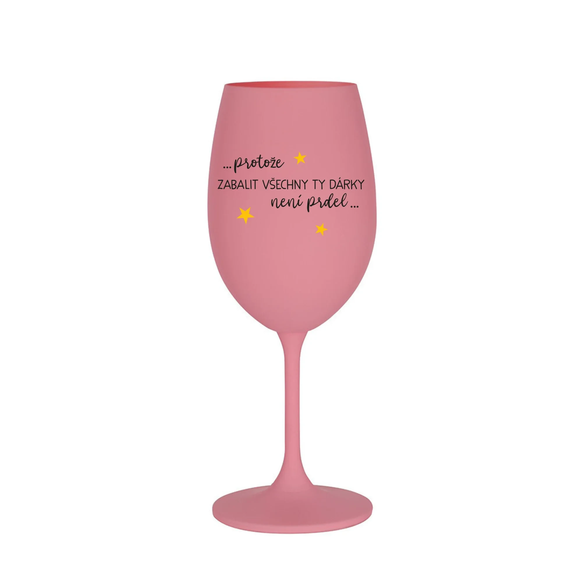 PROTOŽE ZABALIT DÁRKY NENÍ PRDEL - růžová sklenice na víno 350 ml