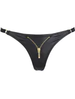 Neuvěřitelně pikantní a sexy tanga s otevřeným zipem podněcují fantazii k činnosti. Zabudovaná kovová kolečka ve zlaté barvě v pase, která jsou spojena dvojitými proužky. Zabudovaný pohodlný bavlněný klínek. Model je vyroben z černého, měkkého latexu. Materiálové složení: polyester 70 %, polyamid 19 %, elastan 6 %, bavlna 5 %