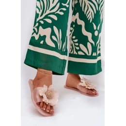 Průhledné Ploché Dámské Pantofle Se Syntetickým Květinou Nuda Vobetta