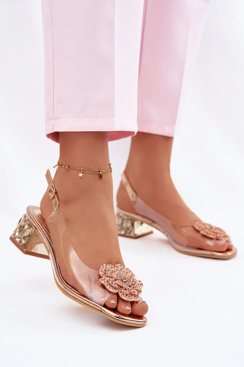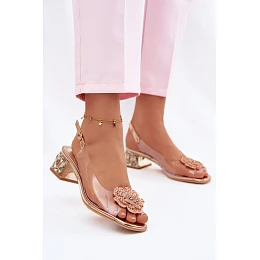 Průhledné sandály na klínku s krystaly a květinou Vinceza 70122 šampaňské