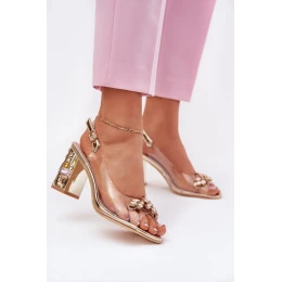 Průhledné sandály na podpatku s krystaly Vinceza 70110 zlaté