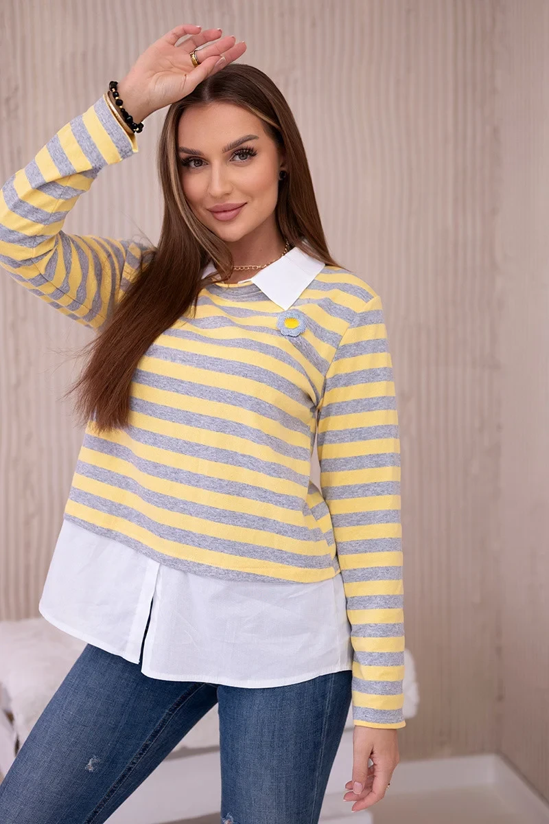 Pruhovaná bavlněná halenka s límečkem žlutá+šedá