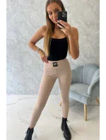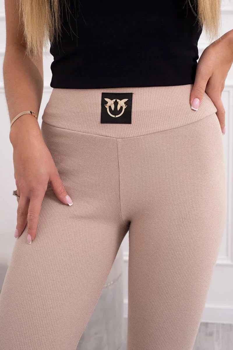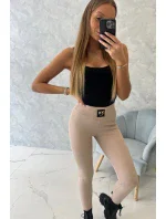 Pruhované legíny s vysokým pasem světle béžové