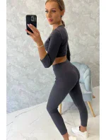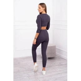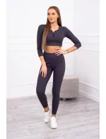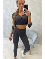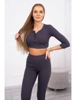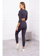 Pruhovaný set krátký top grafitový
