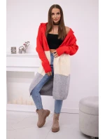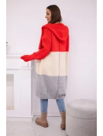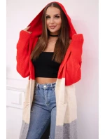 Pruhovaný svetr s kapucí červená + béžová + šedá