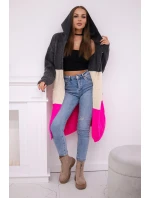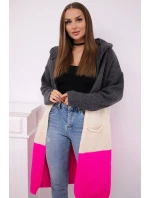 Pruhovaný svetr s kapucí grafit + béžová + růžová neonová