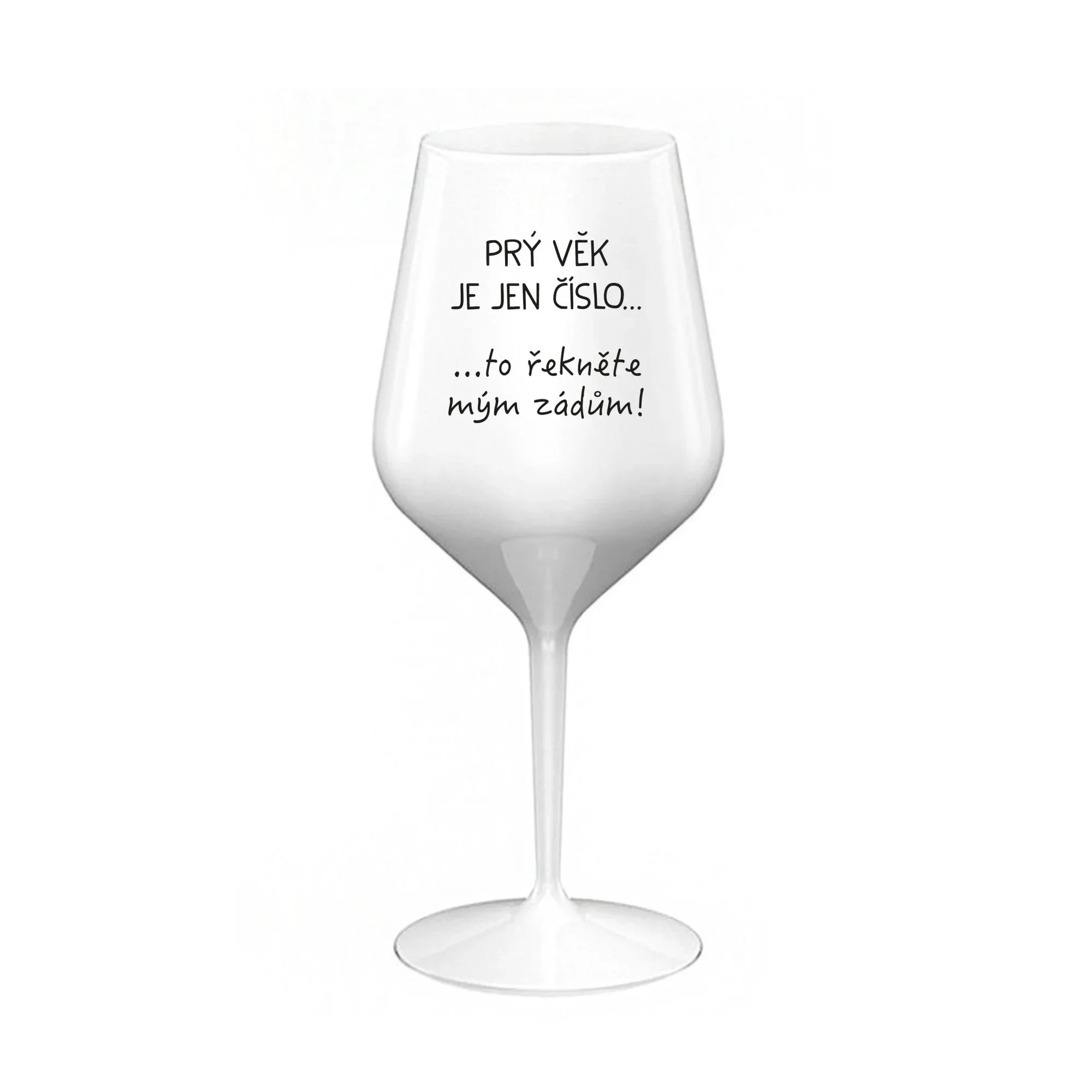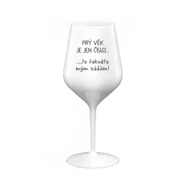 PRÝ VĚK JE JEN ČÍSLO - bílá nerozbitná sklenice na víno 470 ml