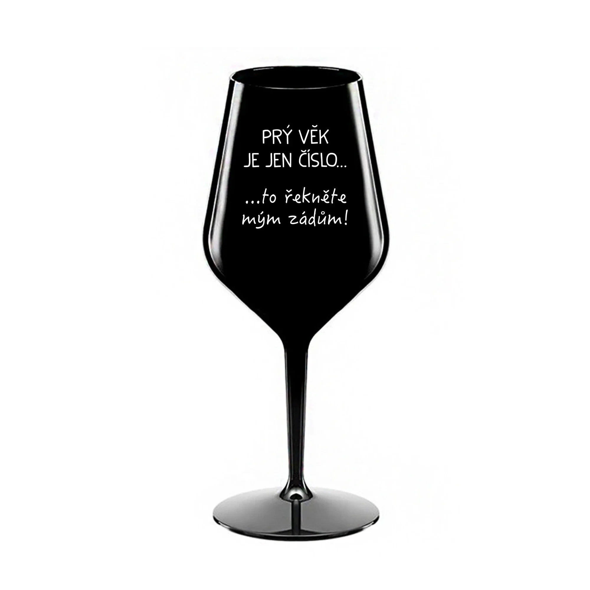 PRÝ VĚK JE JEN ČÍSLO - černá nerozbitná sklenice na víno 470 ml
