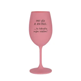 PRÝ VĚK JE JEN ČÍSLO - růžová sklenice na víno 350 ml
