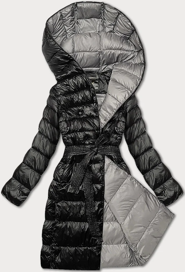 Černá dámská bunda pro přechodné období s páskem pro zavazování Libland (7771)