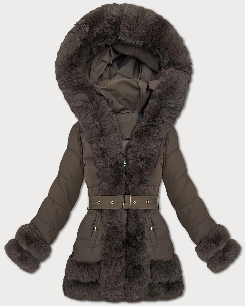 Elegantní hnědá bunda pro přechodné období s kožešinou S'West (B8526-48)