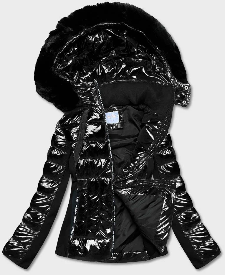 Černá krátká lesklá bunda pro přechodné období (DK100-1)