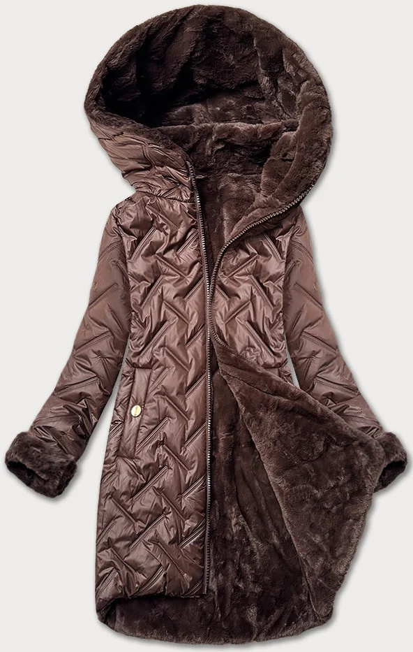 Dámská bunda v čokoládové barvě pro přechodné období s kožešinovou podšívkou S'west (B8253-14014)
