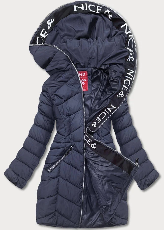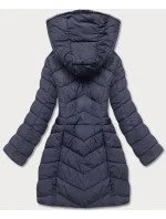 Tmavě modrá péřová dámská bunda pro přechodné období (2M-001)