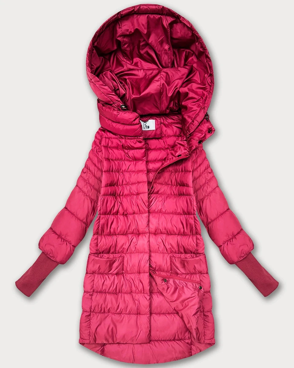 Růžová dámská bunda pro přechodné období s úpletovými stahovacími lemy (1828)