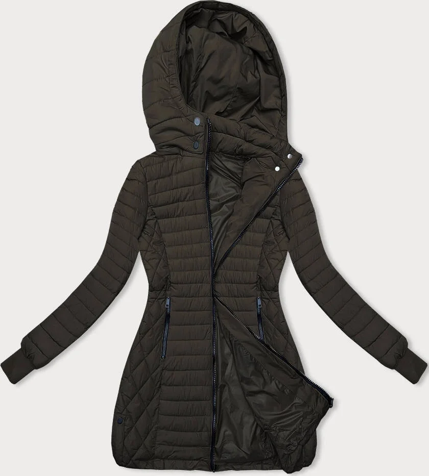 Dámská bunda v army barvě s kapucí pro přechodné období (2M-017)