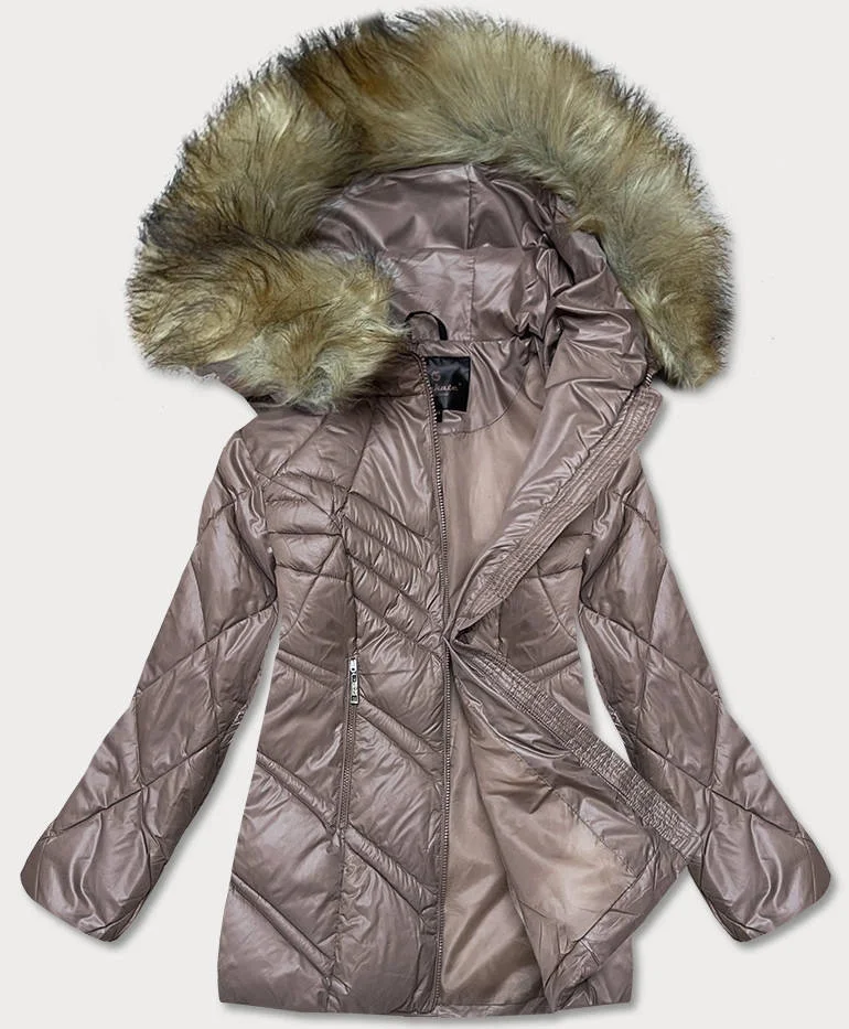 Dámská bunda v barvě cappuccino pro přechodné období s kapucí (H-97)