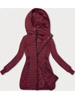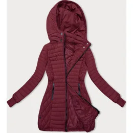 Tmavě červená dámská bunda s kapucí pro přechodné období (2M-017)