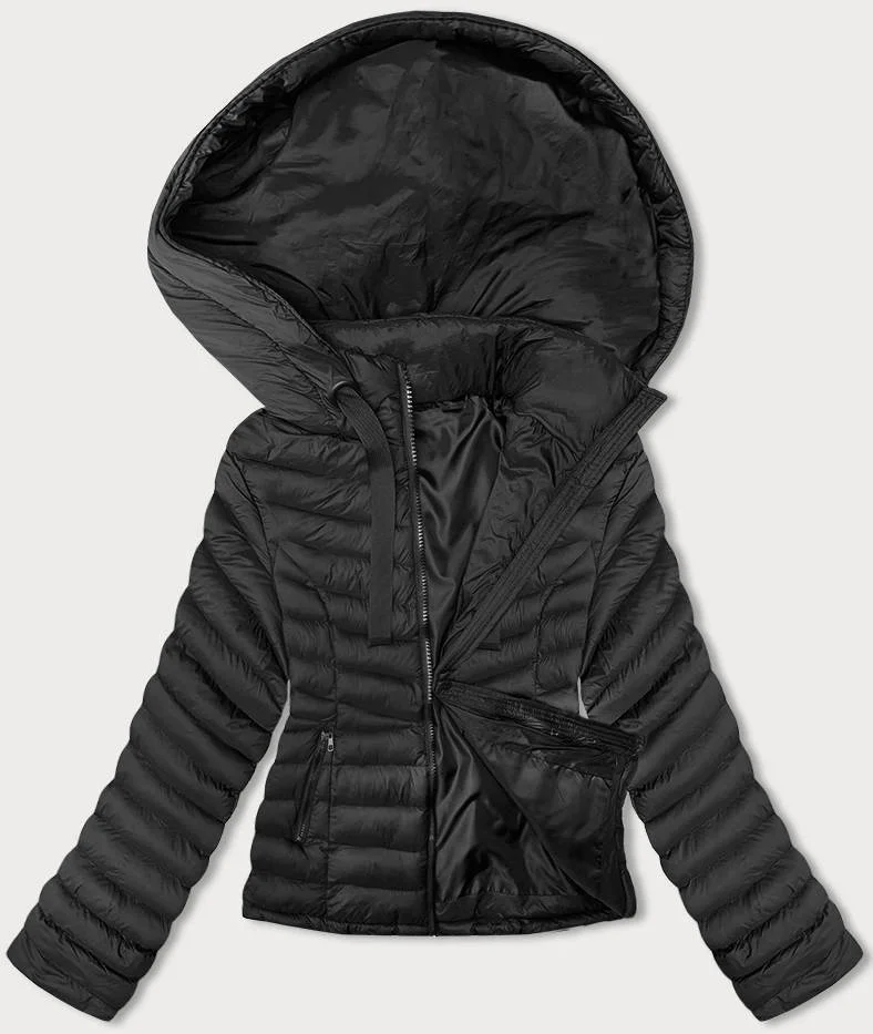 Černá dámská bunda pro přechodné období s kapucí (5M3170-392)