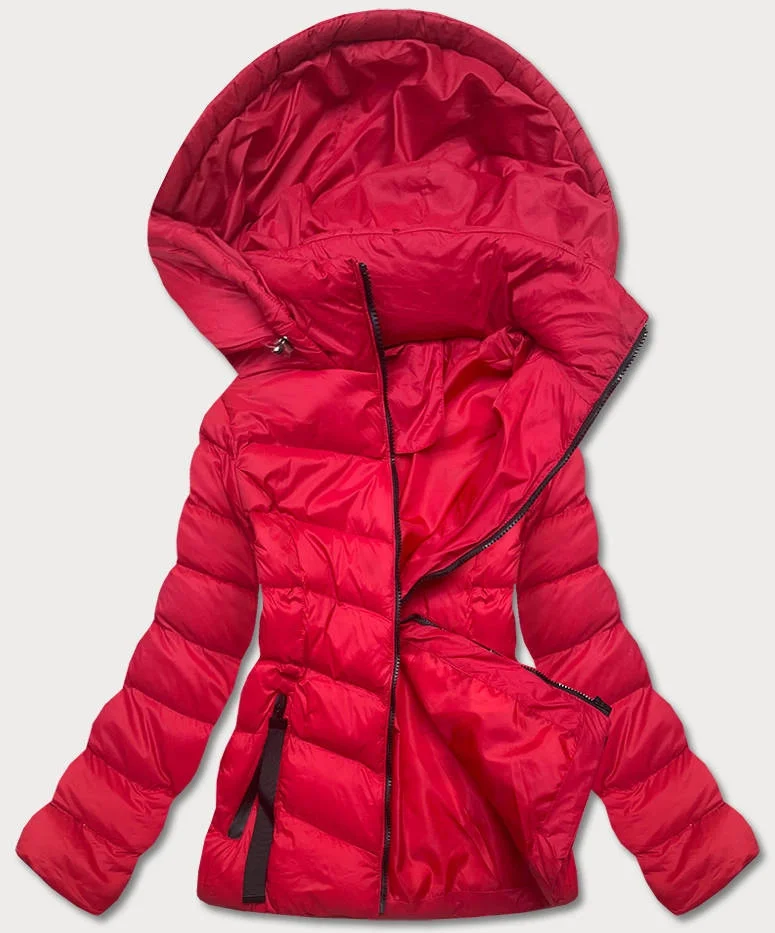 Červená dámská bunda s kapucí pro přechodné období (5M786-270)