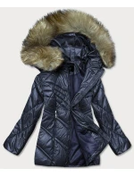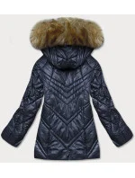 Tmavě modrá dámská bunda pro přechodné období s kapucí (H-97)
