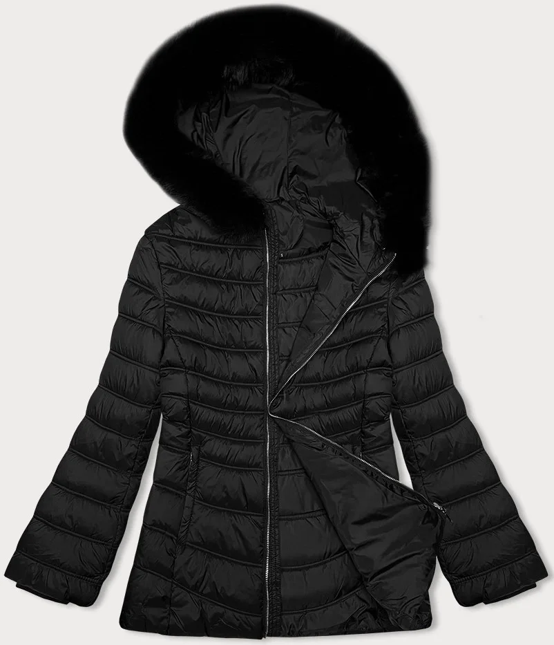 Černá dámská bunda pro přechodné období s kapucí J Style (11Z8093)